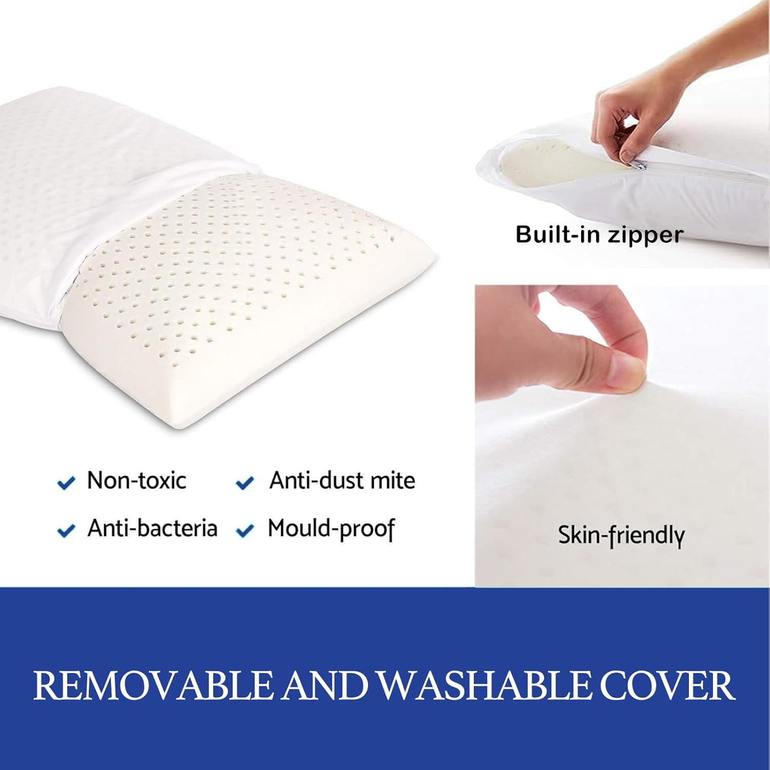 100% Talalay Latex Pillow Bed Pillow for Sleeping, Extra Soft Natural Latex Sleeping Pillow for Back, Stomach or Side Sleepers, Removable Breathable Cotton Cover - High Elasticity