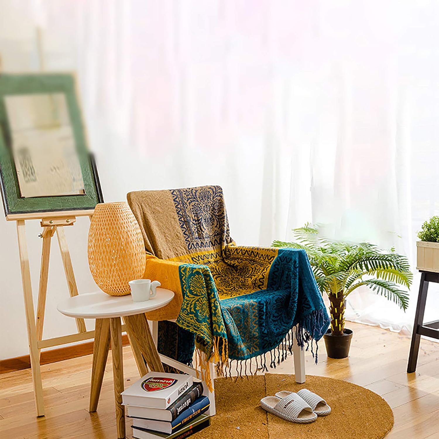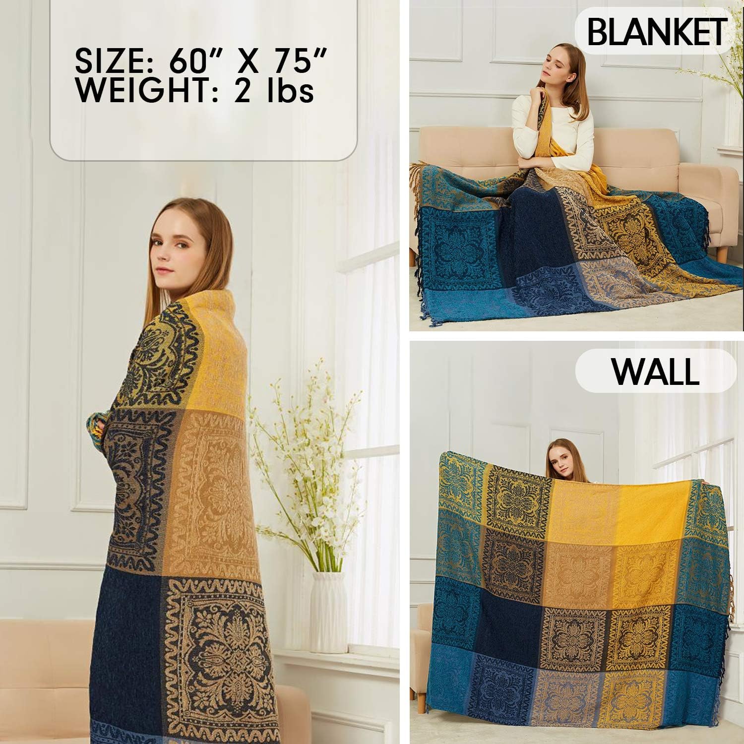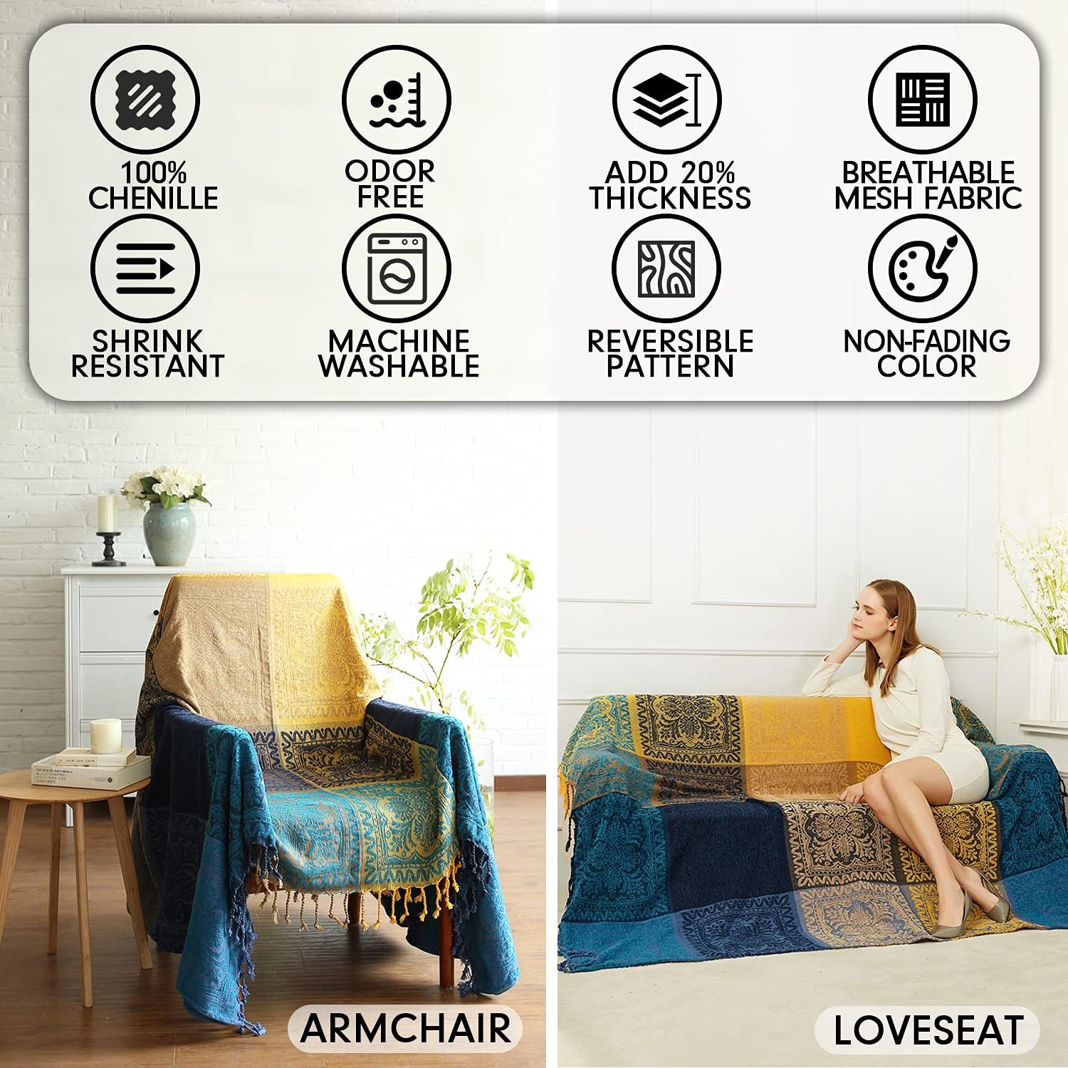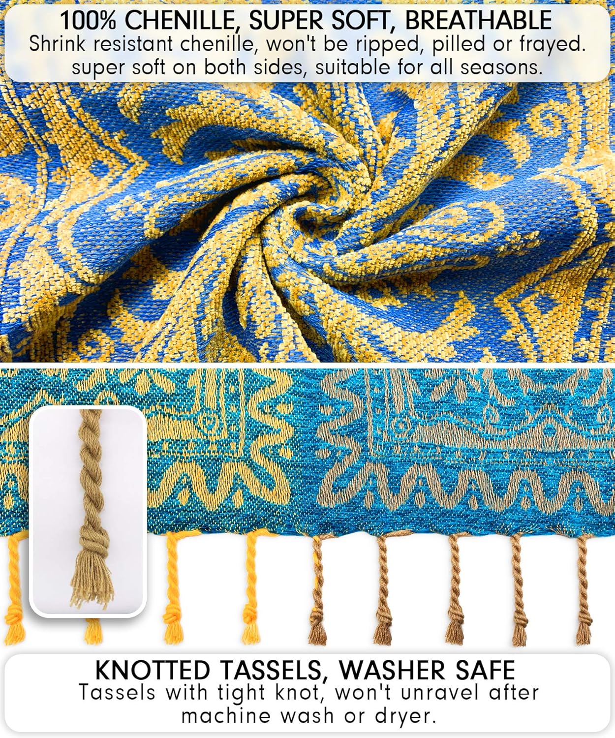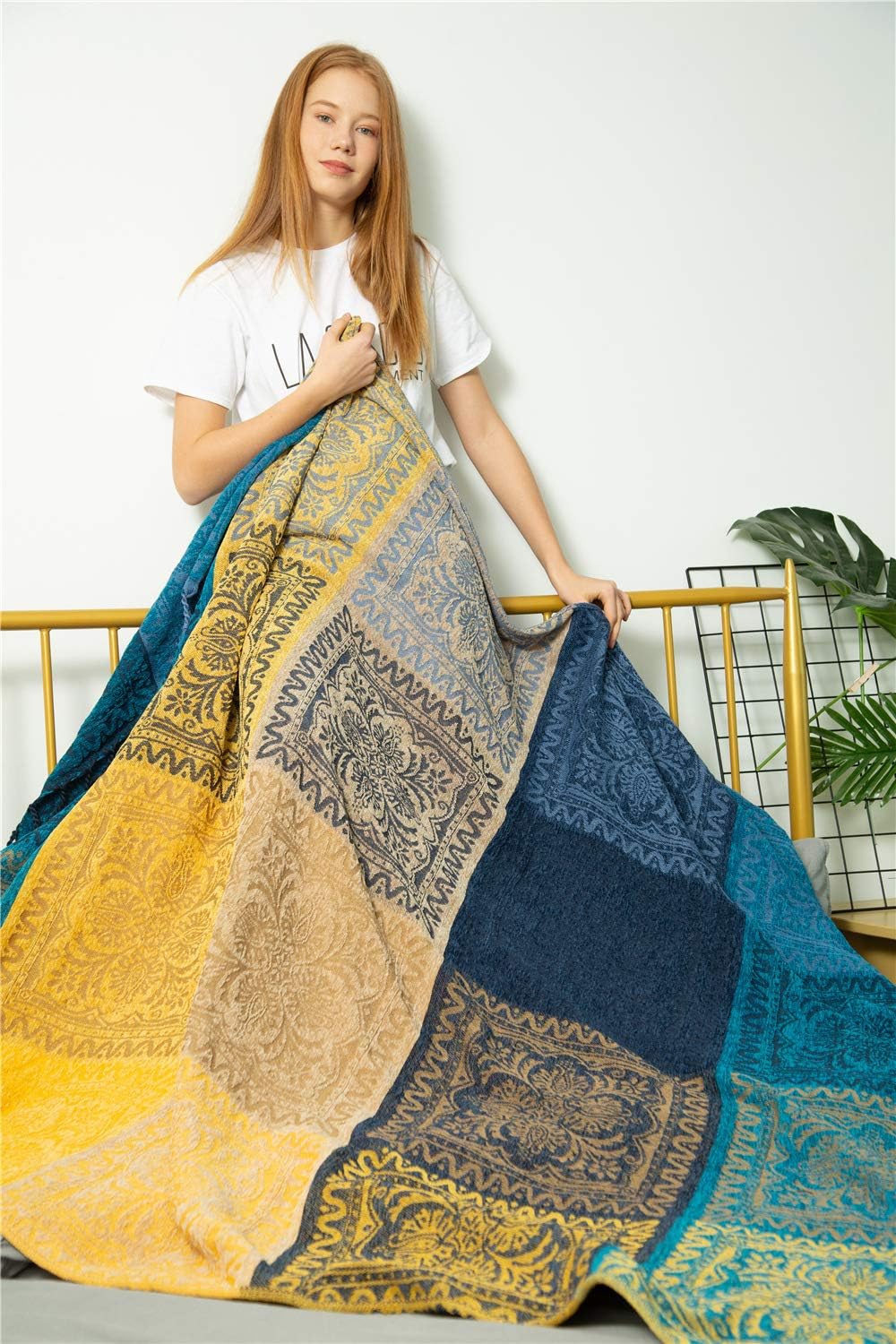 Bohemian Tribal Throws Blankets Reversible Colorful Red Blue Boho Hippie Chenille Jacquard Fabric Throw Covers Large Couch Furniture Sofa Chair Loveseat Recliner Oversized (Blue, S:75x60)