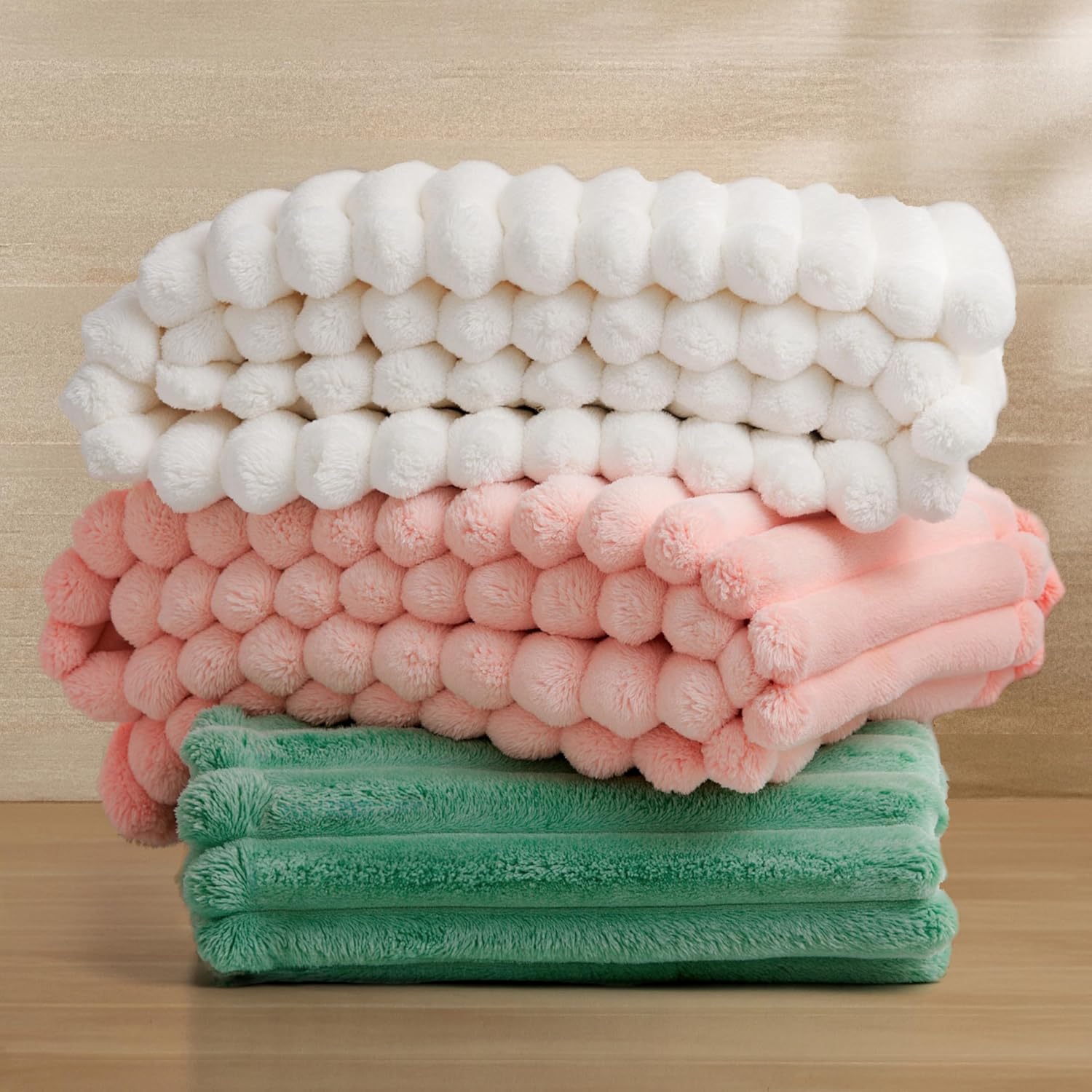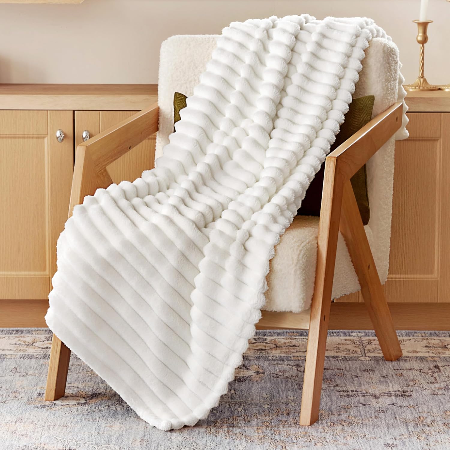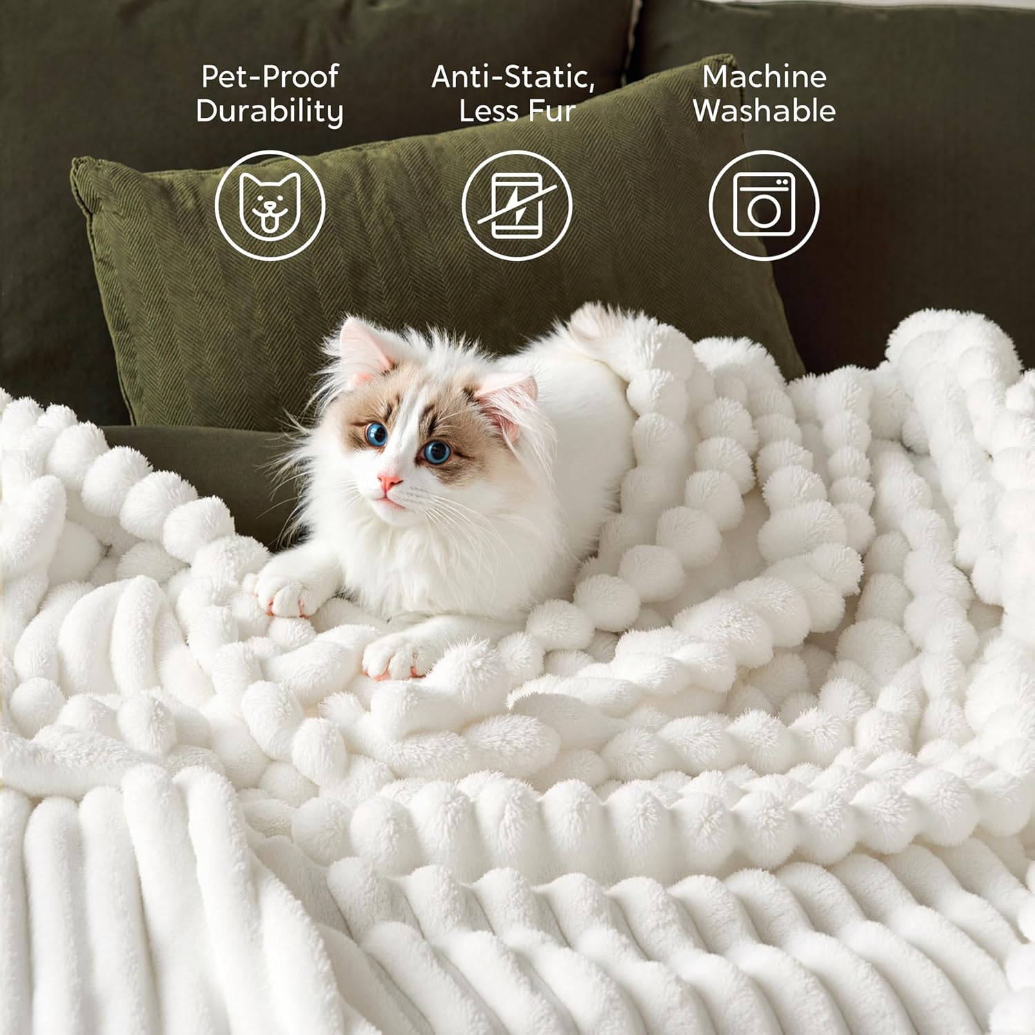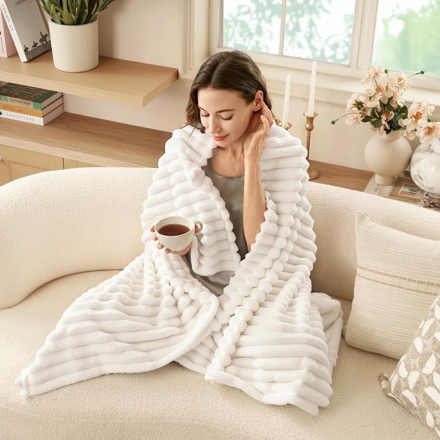 Joiedomi White Throw Blanket for Couch, Soft Fleece Blankets Birthday Gifts for Women Mom Girls, 3D Ribbed Jacquard Cozy Cute Soft Throw Aesthetic Gifts 50x60 Inches