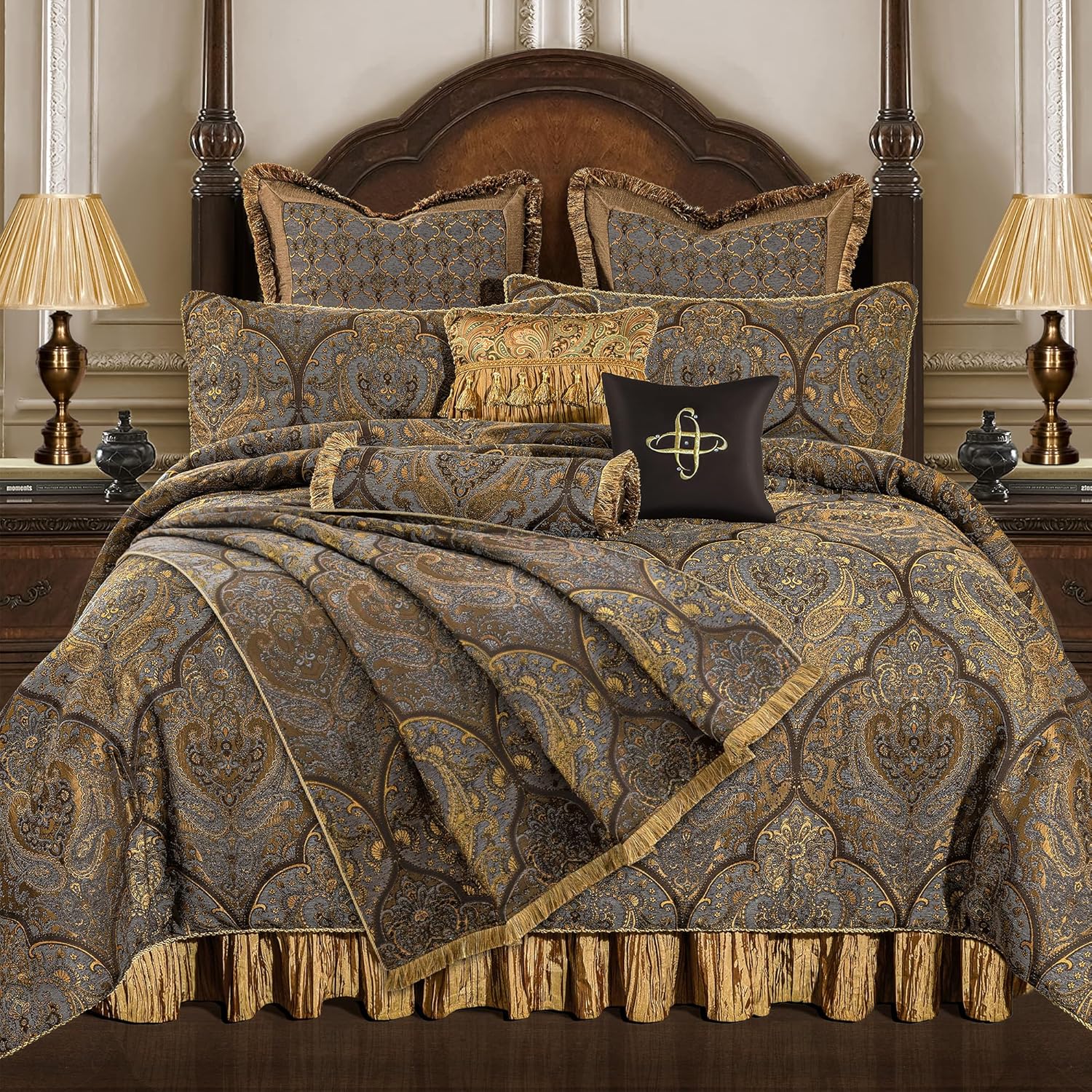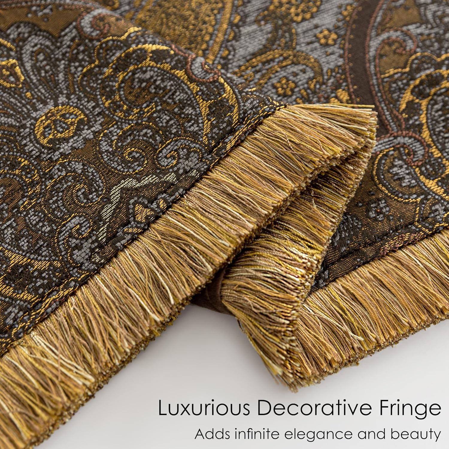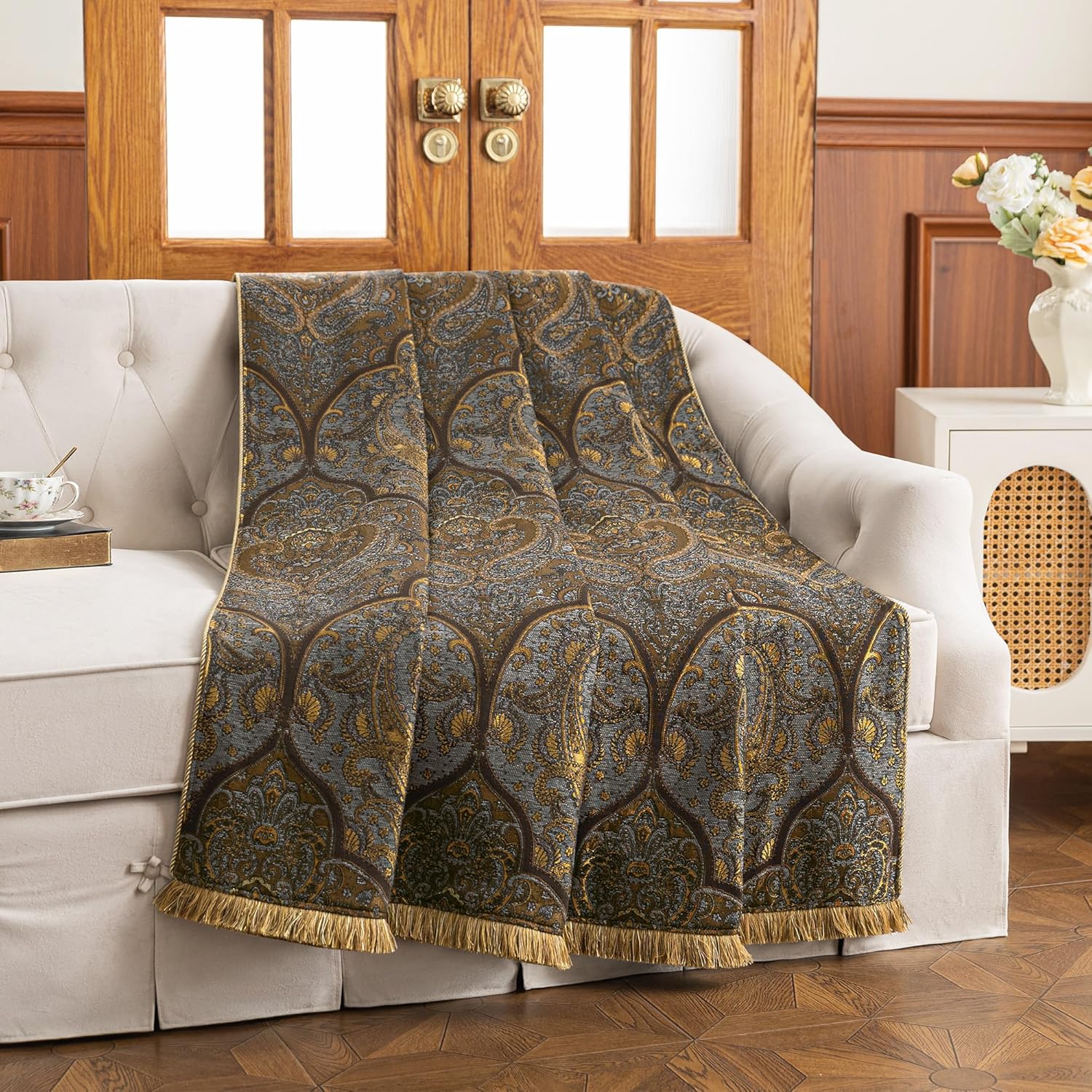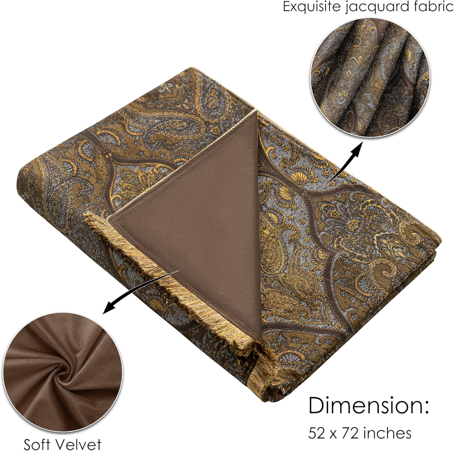 Loom and Mill Vintage Jacquard Throw Blankets for Bed, Classic Antique Damask Throws with Fringes Trim, Soft Lightweight Velvet Lined Throw Blanket for Sofa Couch Chair All Season(Bronze Gold,52”x72”)