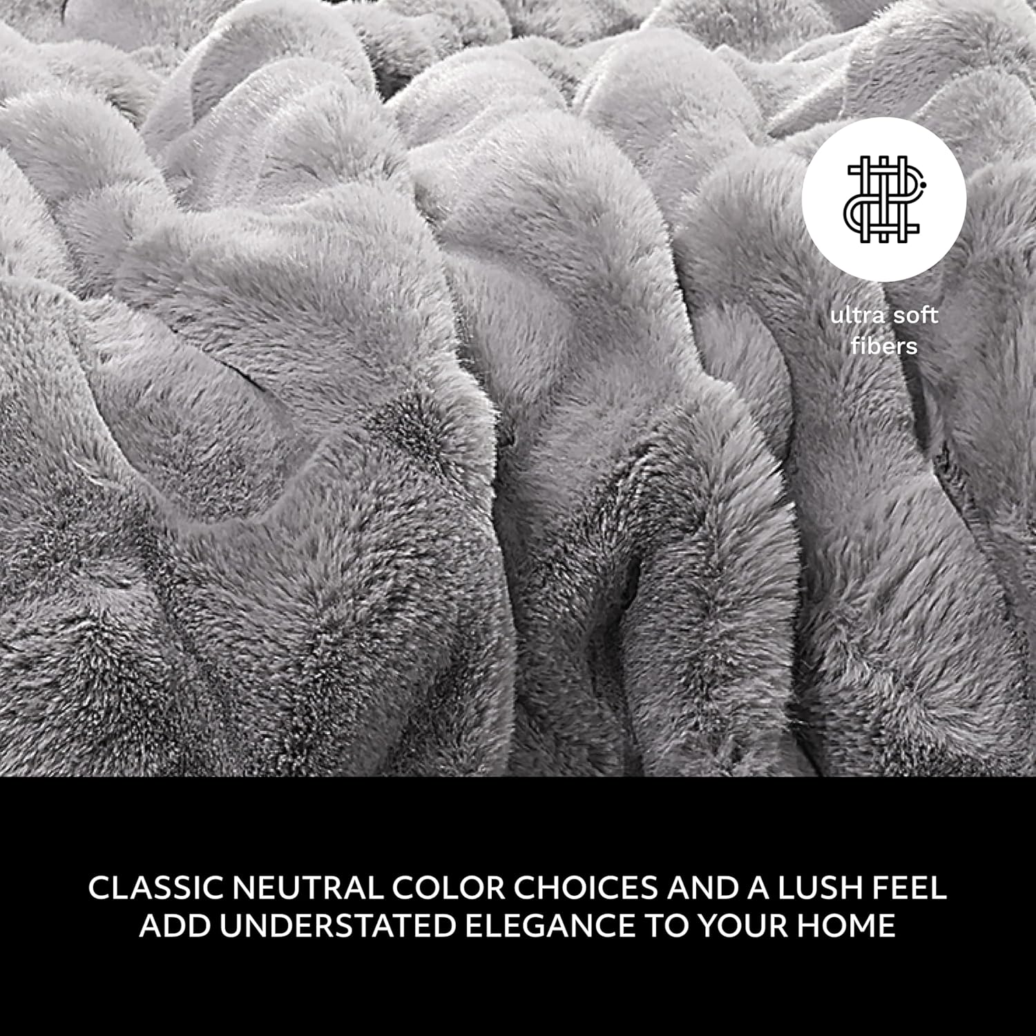 Mon Chateau 60" x 70" Faux Fur Throw Blanket - Reversible Soft Blanket for Queen-Size Bed, Couch, or Sofa, Cozy Home Decor and Stylish Living Room Comfort in Grey