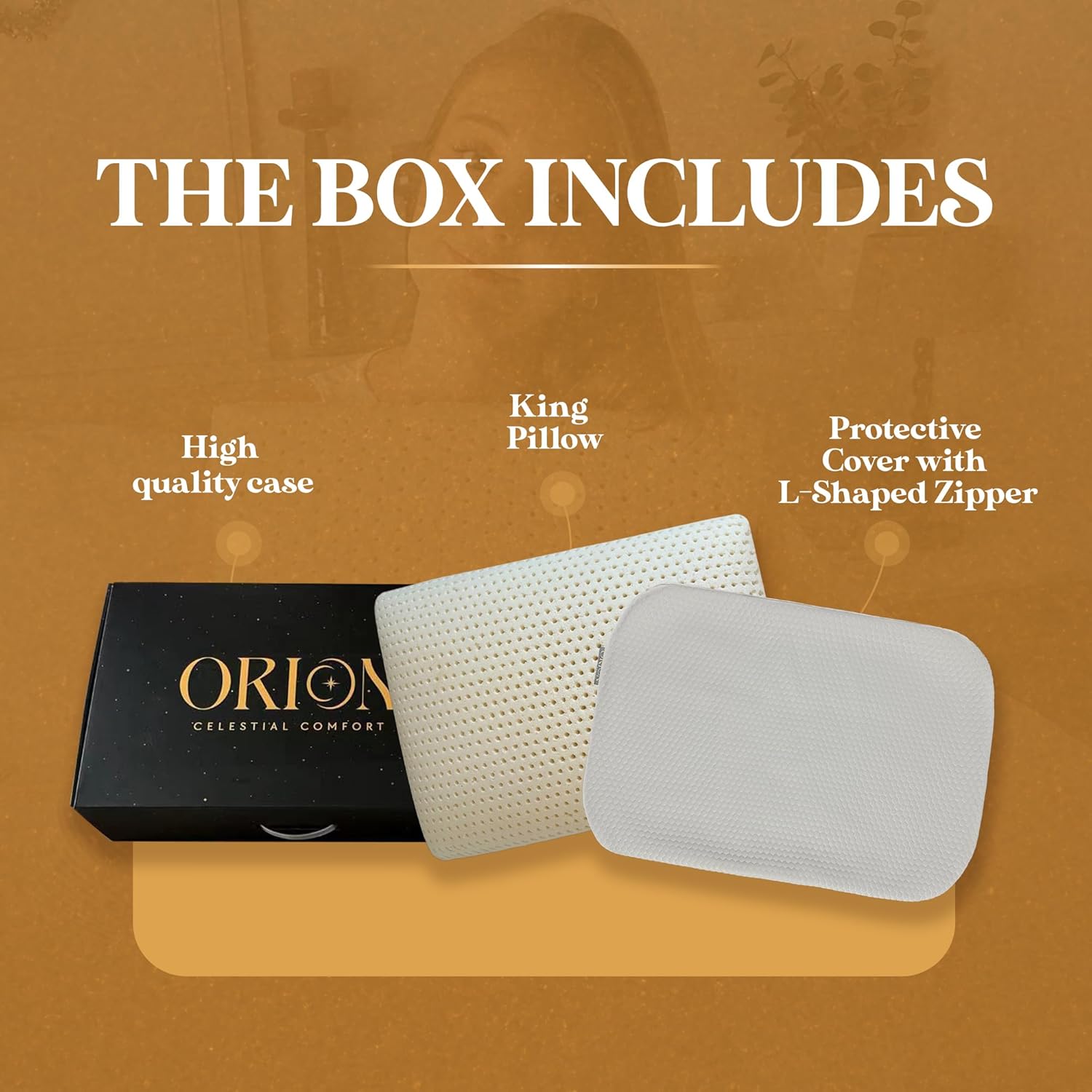 ORION Talalay Latex King Pillows 2 Pack - 100% Talalay Latex with L-Shaped Easy-Open Cover - King Size Pillow for Sleeping and no Vacuum Packing - 33.46 x 15.75 x 5.91 in - Pillows King Size Set of 2