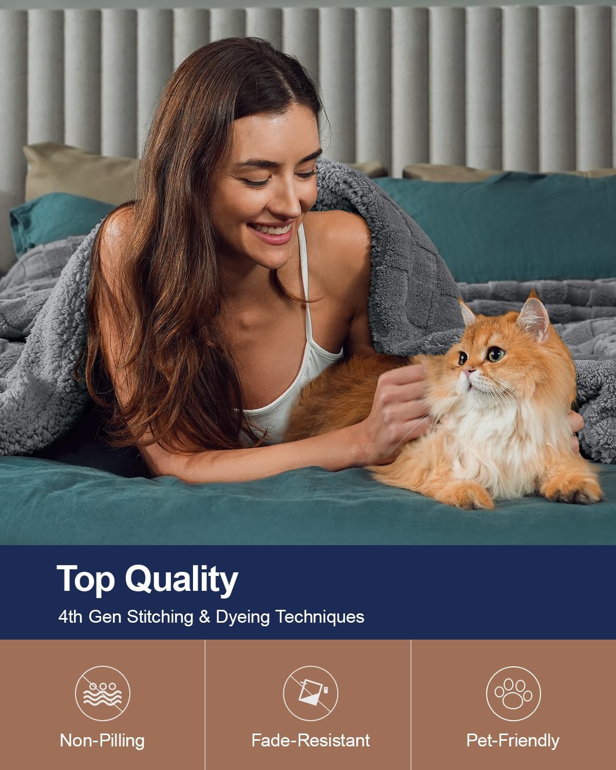 Pawque Super Soft Cozy Throw Blanket for Couch Sofa Bed - Fluffy Sherpa Fleece Reversible Thick Warm Fuzzy Blanket for All-Season, 3D Checkered Jacquard Elegant Decorative Blankets, Grey, 50" x 60"