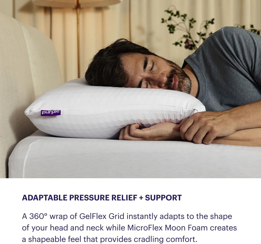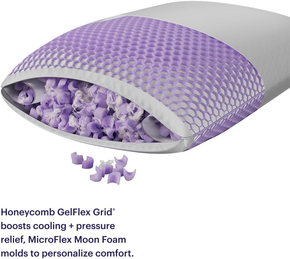 Purple Freeform Pillow - Standard Size, Customizable Support with GelFlex Grid & MicroFlex Moon Foam - Pressure Relief, Cooling, Extra Filling & Adjustable Height