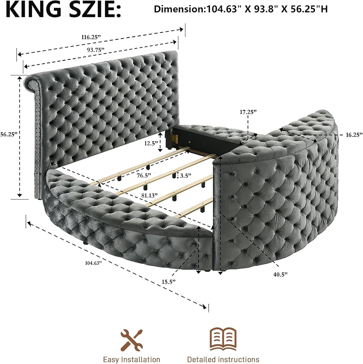 | KING-Product Dimensions: | 104.63"Lx93.75Wx56.25H, Weight (lbs.):439.90 |