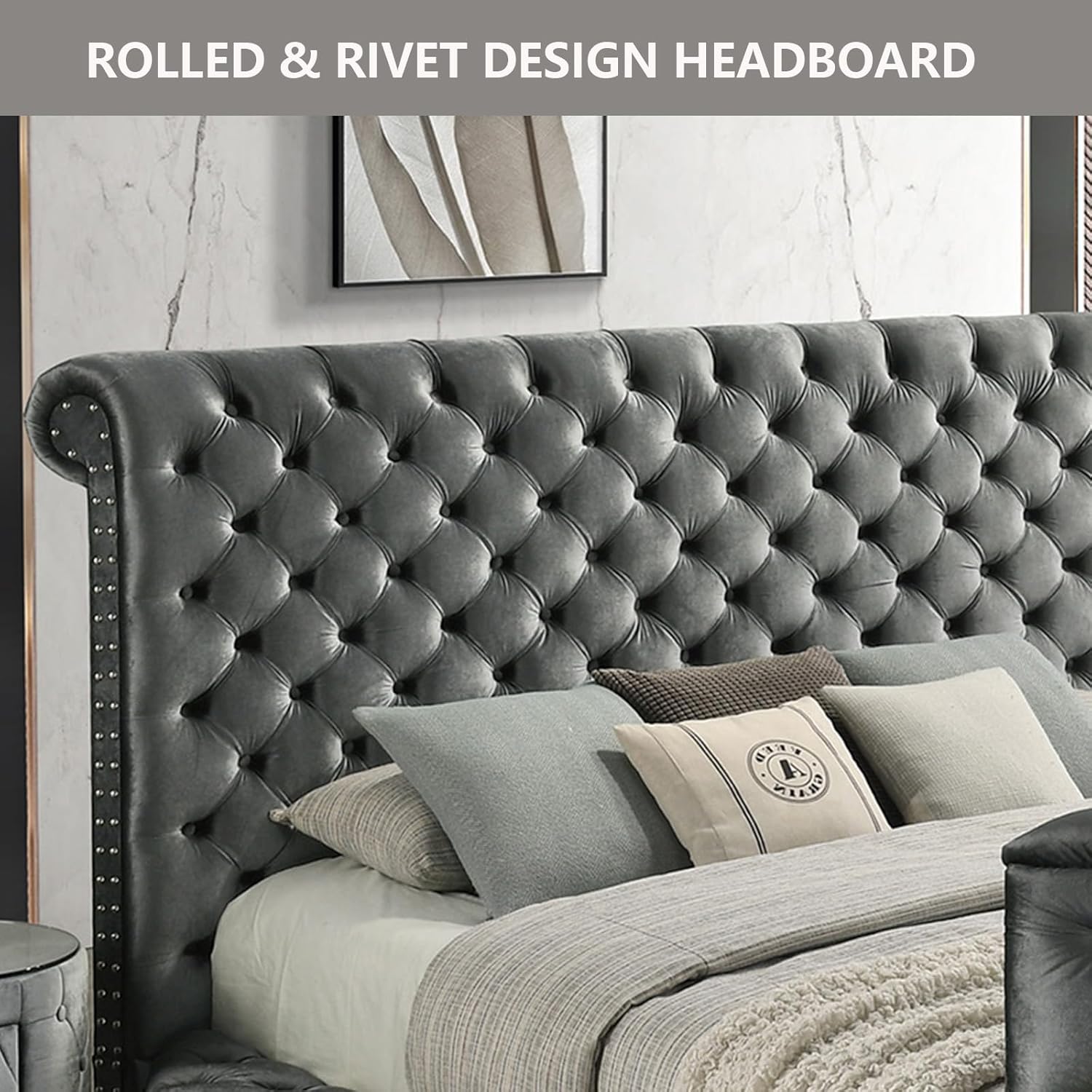 TUFTED BED FRAME WITH NAILHEAD TRIM