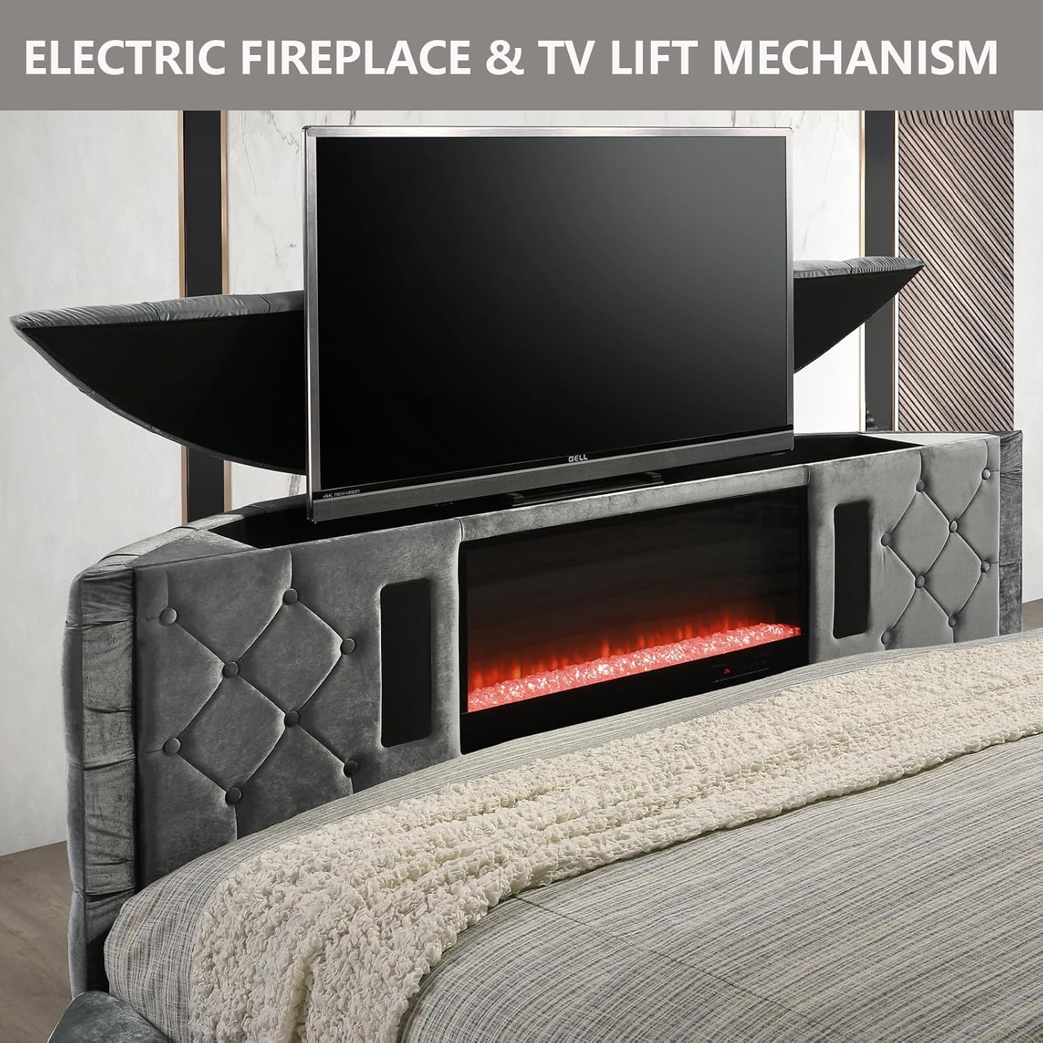LUXURY TUFTED FIREPLACE BED FRAME