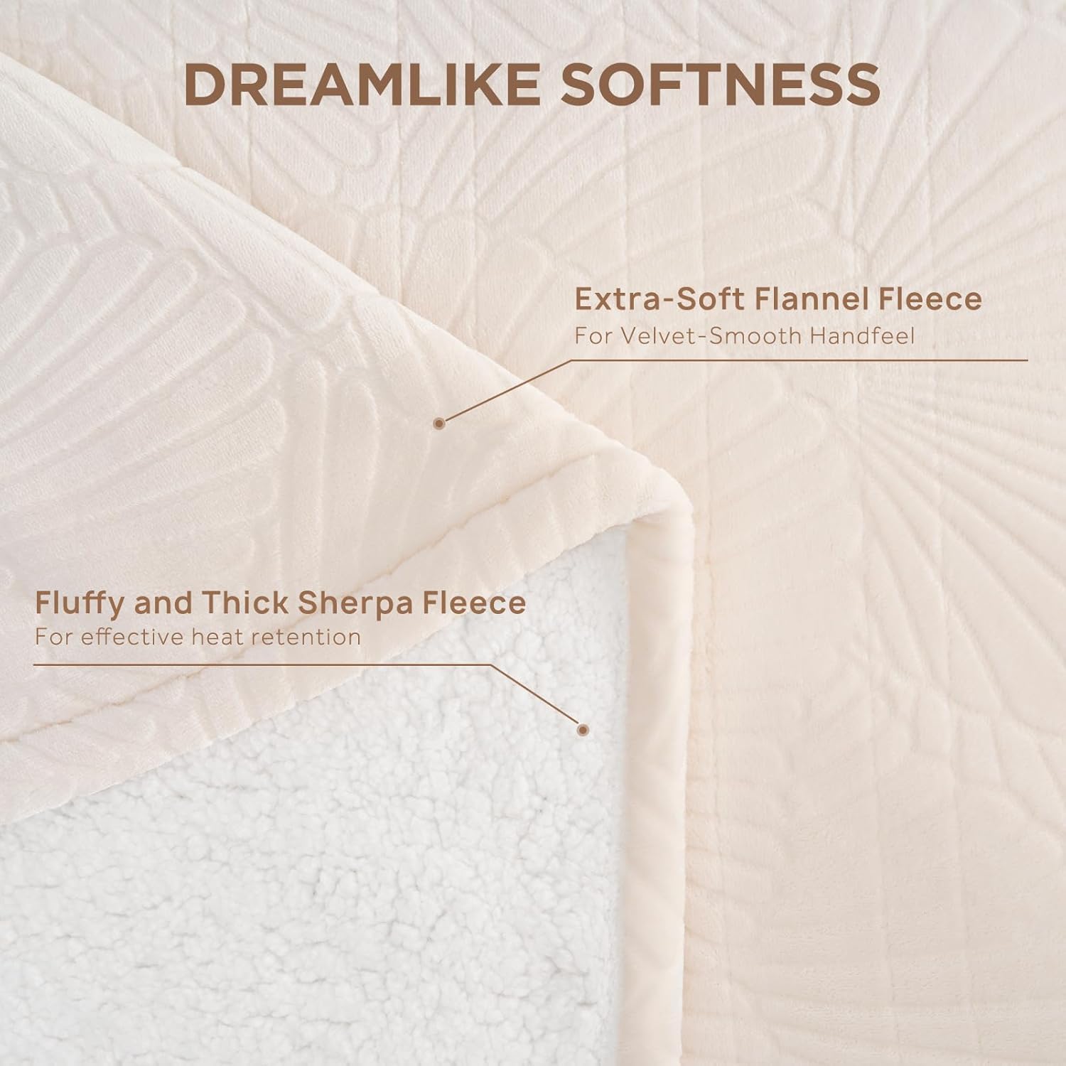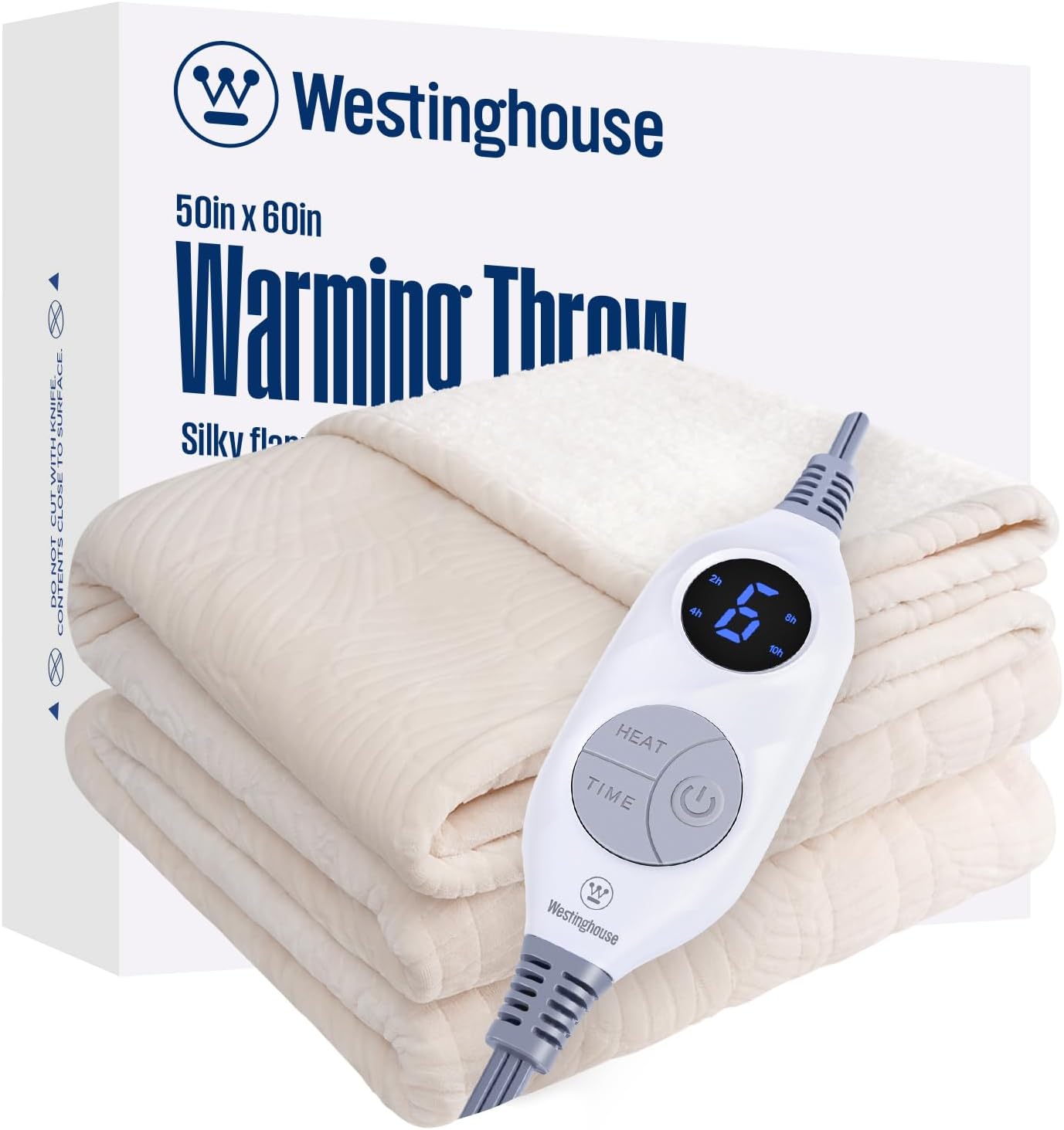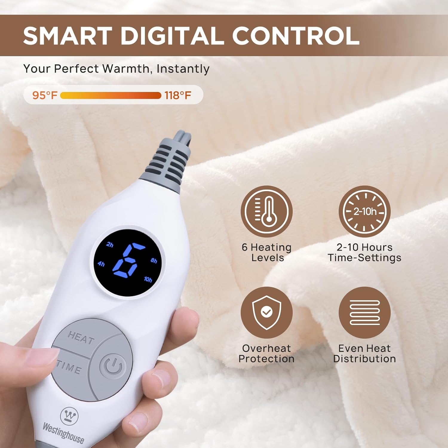 Westinghouse Heated Throw Blanket, Flower Jacquard Electric Blanket Throw with 6 Heating Levels and 2-10 Hours Auto-Off, Flannel to Sherpa Super Cozy Heated Blanket, Machine Washable (50" x 60" Beige)